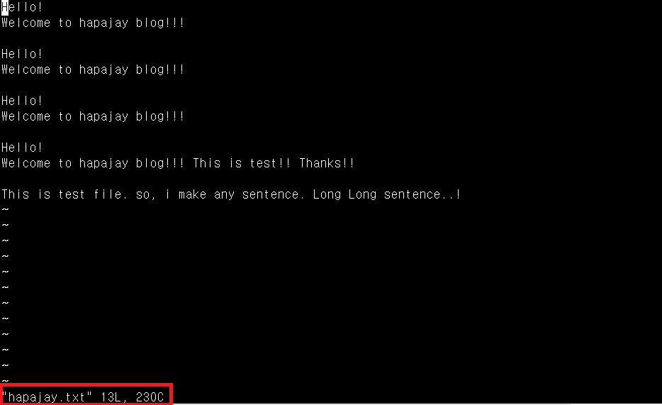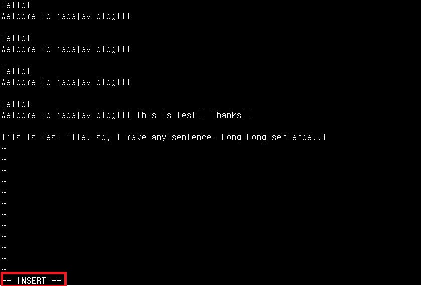 이렇게 입력한 후 hapajay.txt 파일 편집모드로 들어가면 세 가지 모드로 나뉘게 되는데요!!