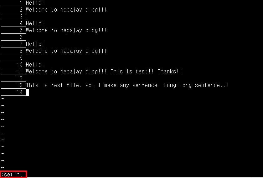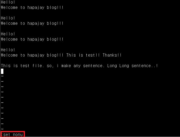 그래서 위에서 배운 :set nonu 명령어로 지워줍시다!