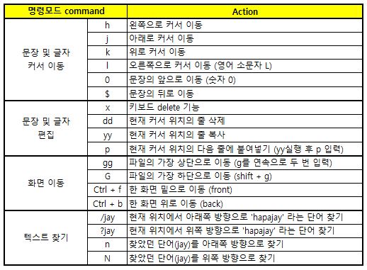 hapajay.txt 파일 안에 내용을 수정하기에 앞서 커서를 움직이거나 문자를 찾을 수 있는 명령어들로 정리하였는데요!