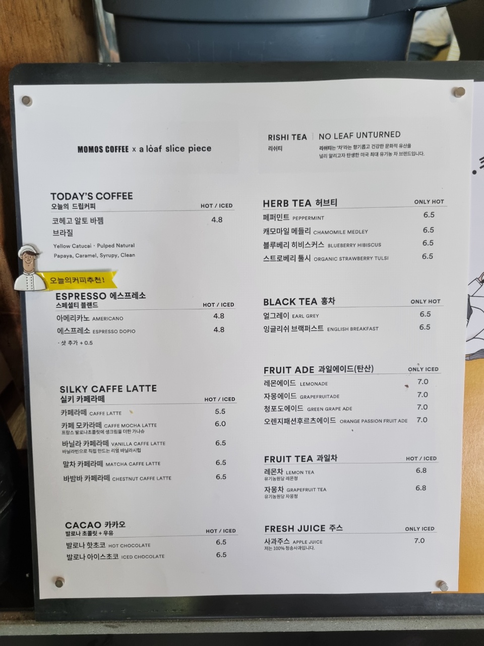 음료를 주문하기 위한 메뉴판입니다!