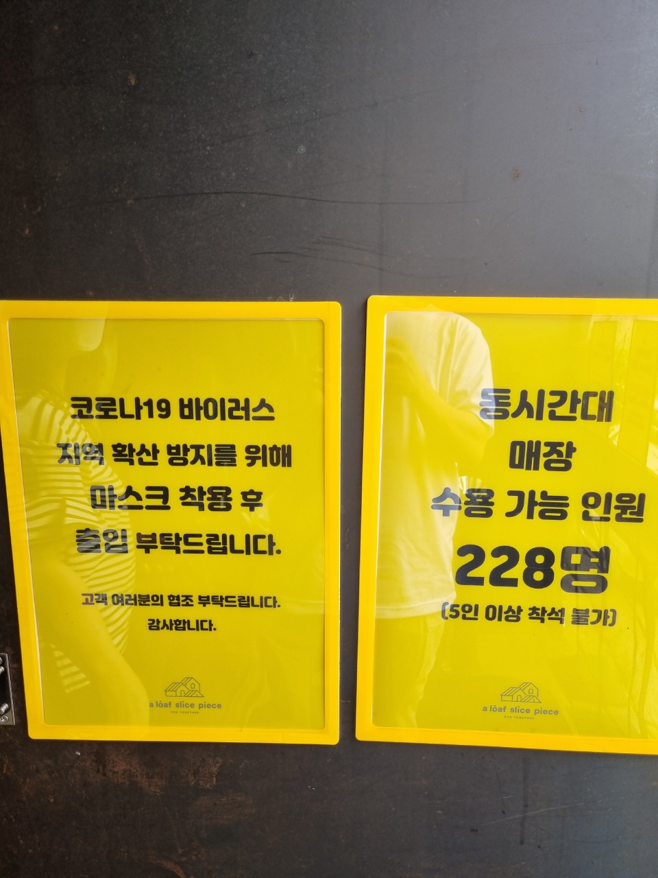 동시간대 매장 수용가능인원이 228명이라...
