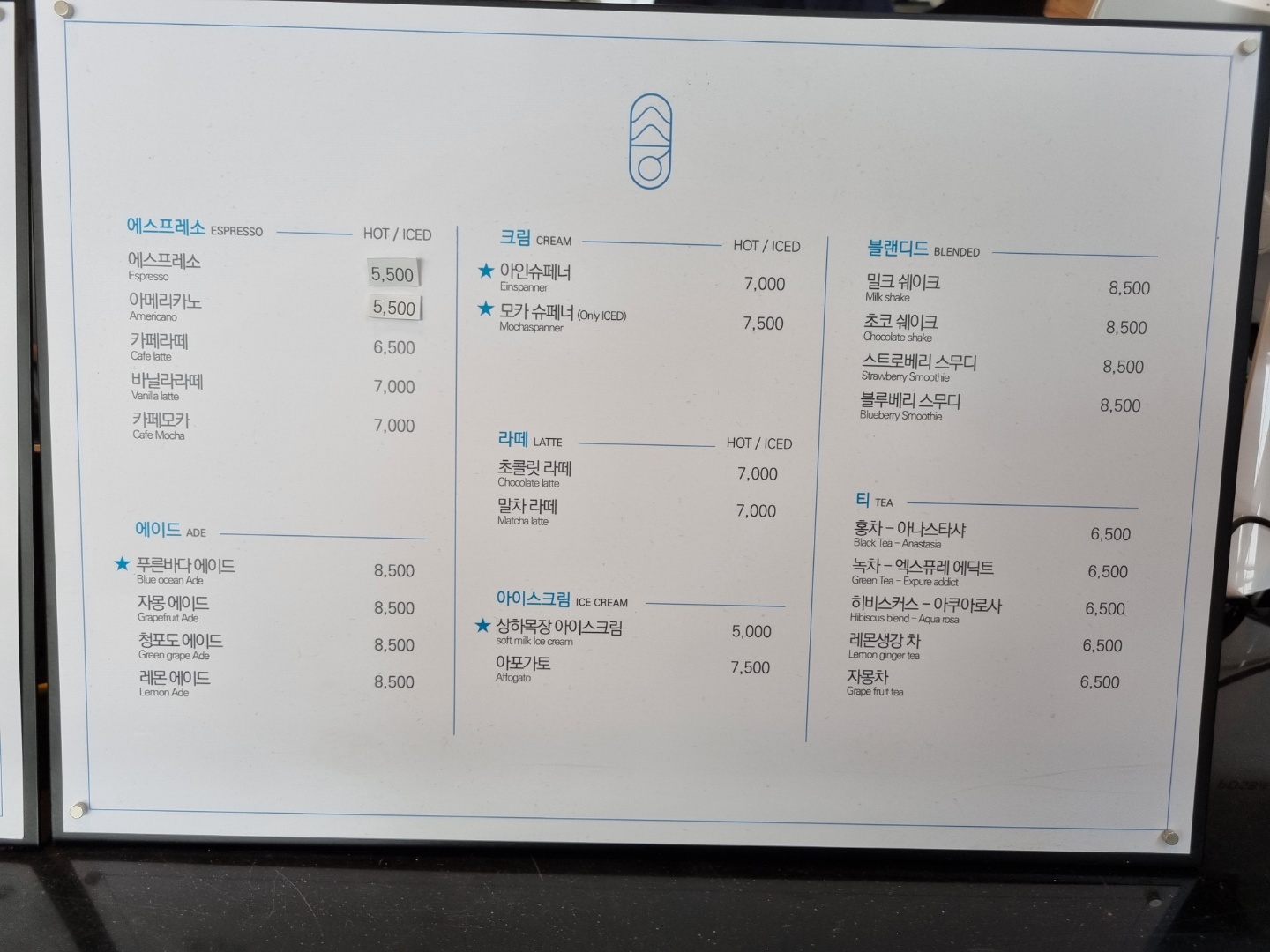메뉴판을 참고해 주세요!